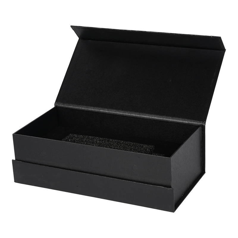 بيت / منتج / صندوق هدايا ورقي / صندوق هدايا ورقي قابل للطي / صندوق هدايا صلب مغناطيسي أسود قابل للطي مع حشوة رغوية